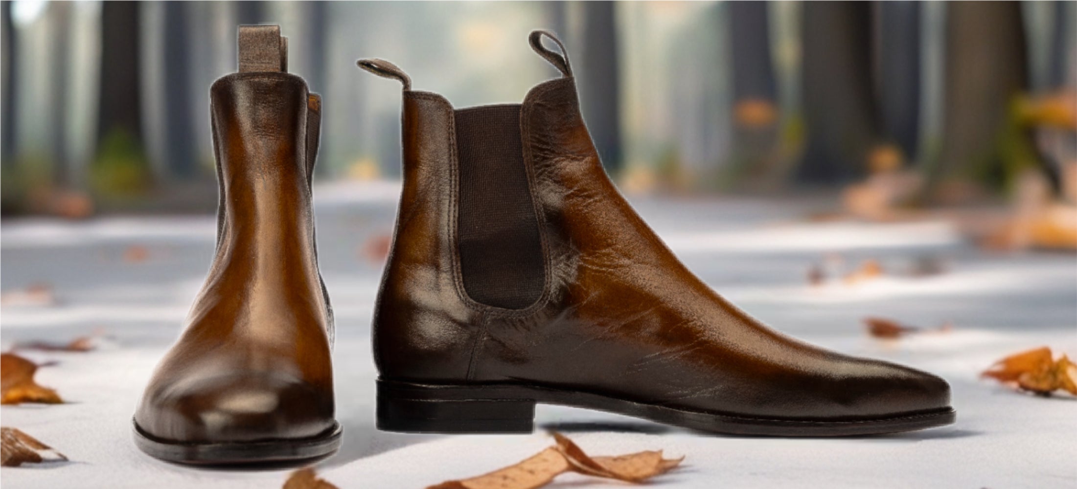 The Dawson | Patina Brown Chelsea is a handmade ankle boot featuring hand-painted full-grain calf leather, square toe design, Goodyear welted sole, leather & wood stacked heel, and a breathable calf leather lining. Stylish, versatile, and built to last.