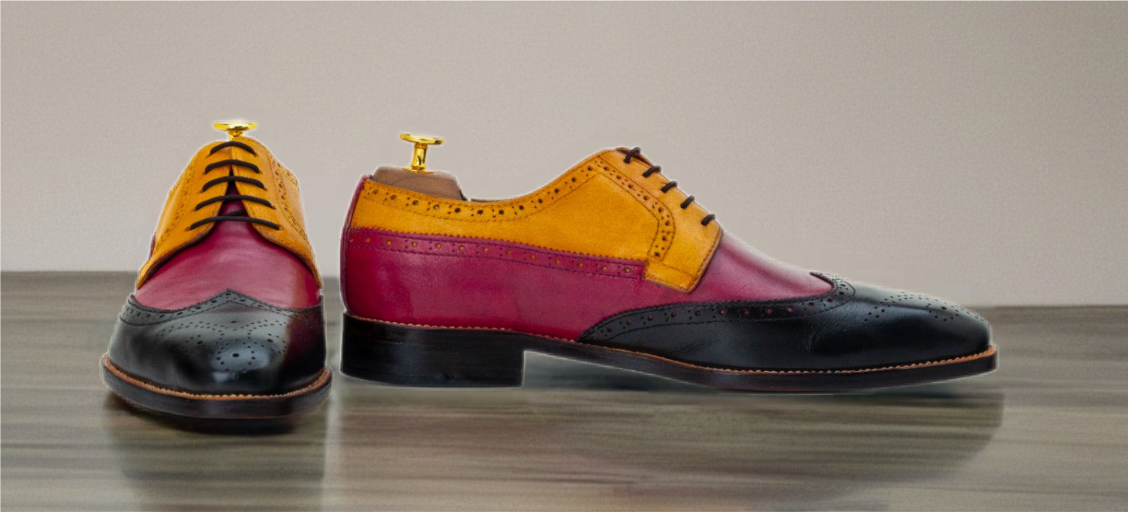 The Alaric Colorblock Shoe adapts to your every mood, effortlessly bridging daring style and practical elegance. Lace it up with a tailored suit to make a bold statement at a formal event, or pair it with jeans for a striking street-ready look—the black, purple, yellow, brown, and blue palette adds a versatile vibrancy to any outfit. Handmade with customizable color options, The Alaric offers a perfect fusion of lace-up durability and fearless flair, urging you to step into every occasion with a confidence that turns heads.