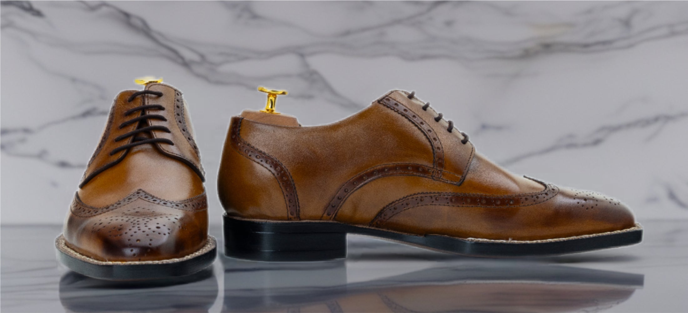 The Ashcroft Handmade Brogue Derby adapts effortlessly to your every ambition, seamlessly bridging formal sophistication and casual charm. Lace it up with a tailored suit to command attention at formal events, or pair it with chinos for a polished yet relaxed look—the tan brown patina and brogue detailing elevate every outfit with timeless allure. Handmade with customizable color options, The Ashcroft offers a perfect fusion of lace-up durability and versatile elegance, urging you to step into every moment with a presence that captivates.