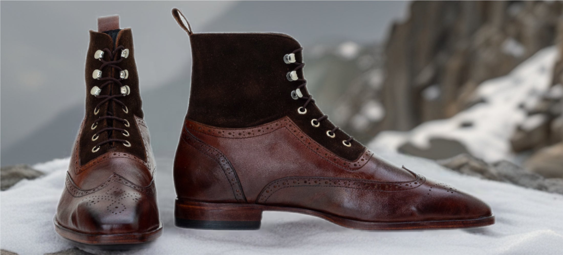 The Harkin boots are a celebration of refined materials and time-honored craftsmanship. Crafted from a combination of deep brown suede and full-grain calfskin leather, each panel is carefully selected and hand-cut to enhance the boot’s visual depth and texture. The interior is fully lined with 100% soft calf leather—breathable, supple, and luxuriously comfortable against the skin. Every stitch is placed by hand, by skilled artisans who have spent generations perfecting the craft. It’s not just a boot—it’s a legacy, wrapped in the warmth of hand-finished leather.