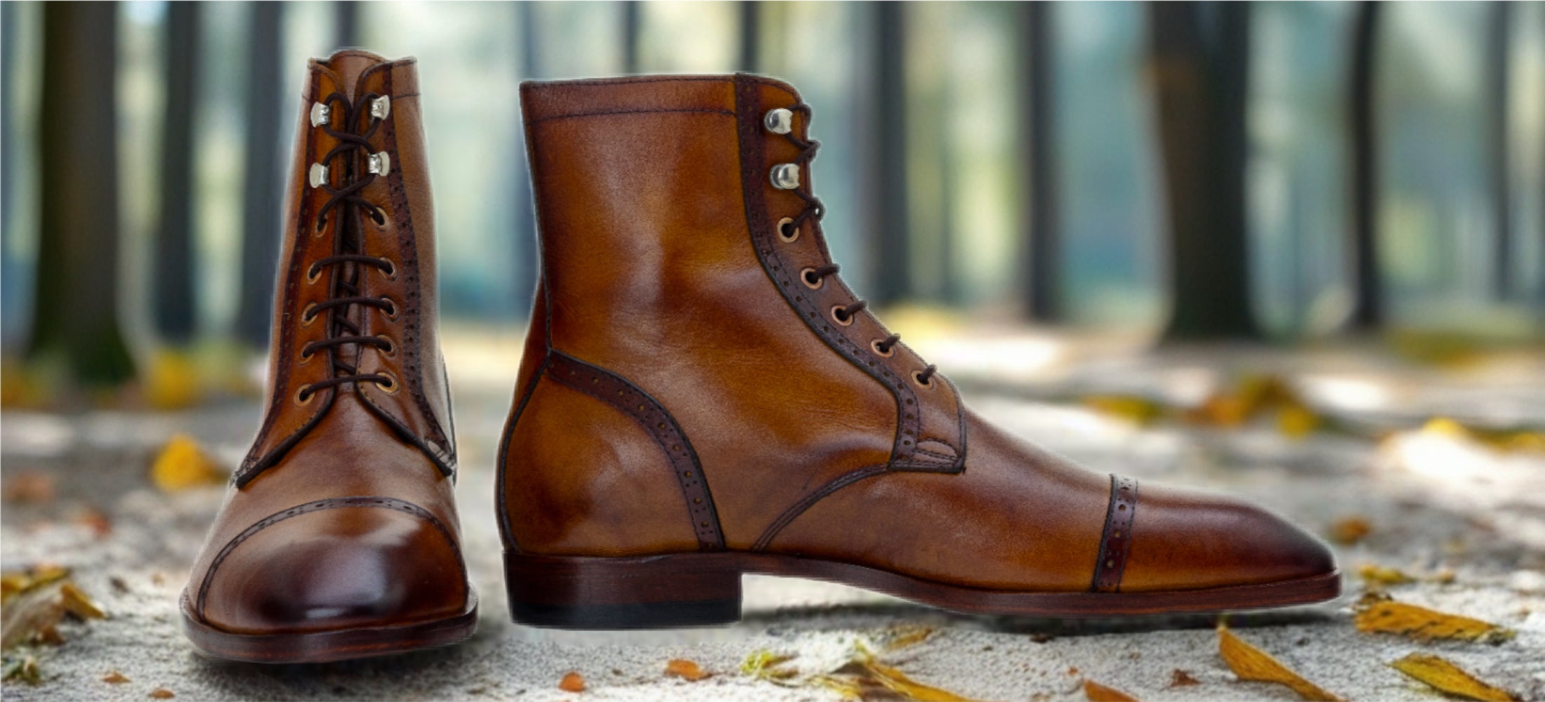 The Morven Cap Toe Boots combine timeless derby style with luxurious craftsmanship. Made from hand-painted brown burnished calf leather, these ankle boots feature a rounded almond toe and lace-up closure. Lined and built with 100% genuine calf leather and a durable Goodyear welted sole, they offer unmatched comfort, durability, and elegance for any occasion.