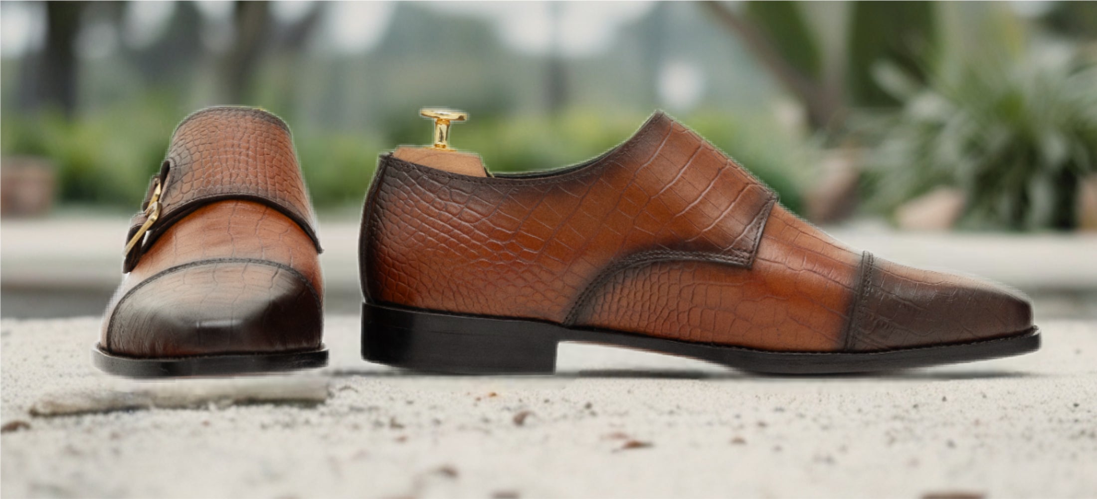 Bold and commanding, The Olander double monk strap redefines modern formality with a sophisticated twist. Its square toe silhouette pairs seamlessly with the crocodile pattern, striking a balance between refined tradition and contemporary flair. The double buckle design adds dimension and polish, making it an instant head-turner at upscale events or sharp office settings. This is for the gentleman who doesn’t settle for the ordinary—he curates every detail of his wardrobe.