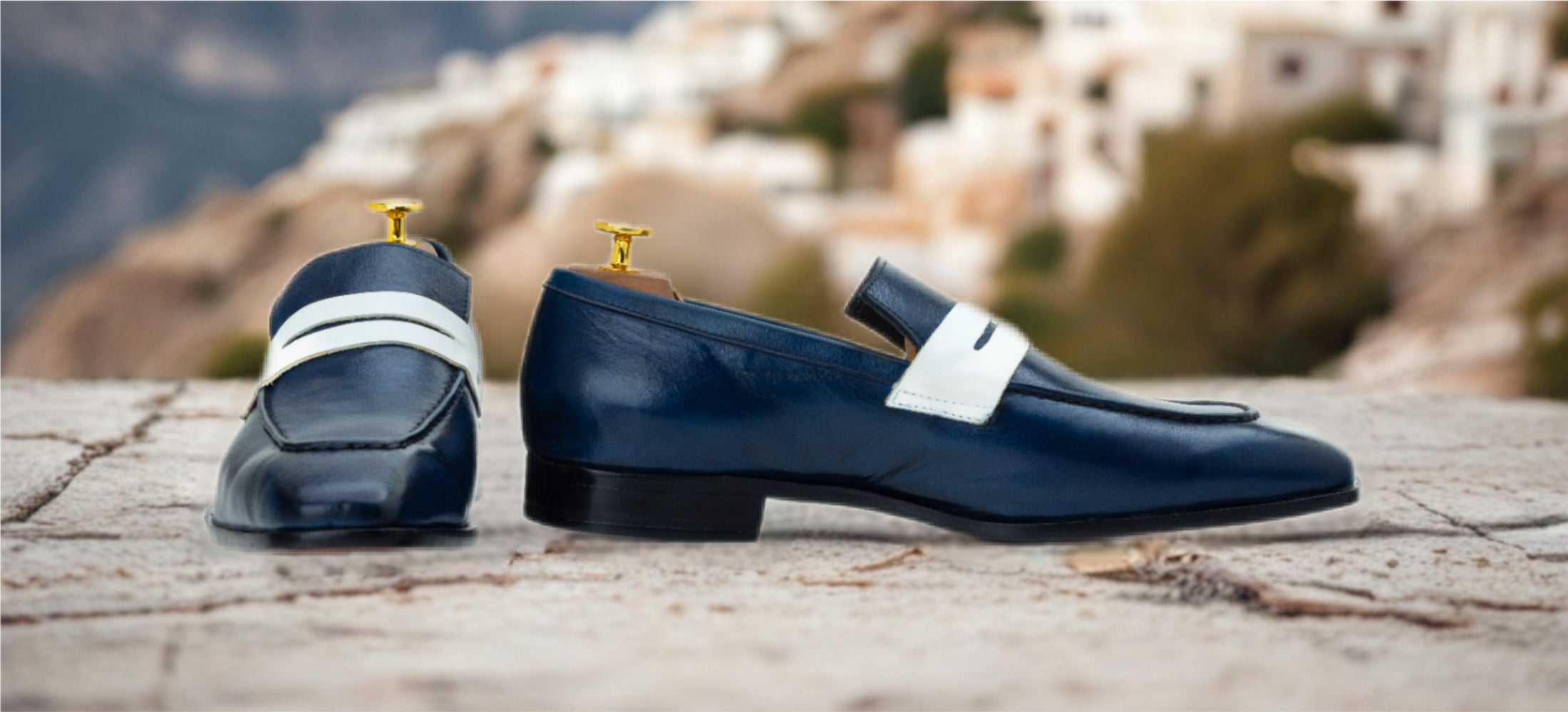 The Sloane redefines formal footwear with its sleek slip-on design and bold square toe silhouette, exuding timeless sophistication. The striking blue and white finish, meticulously hand-polished, brings a modern twist to classic loafer style, making it a standout for the discerning gentleman. A leather-and-wood stacked heel adds a subtle lift, enhancing the loafer’s elegant profile with balanced support. Hand-stitched over 5 days, The Sloane blends heritage craftsmanship with contemporary finesse, perfect for those who seek to impress.