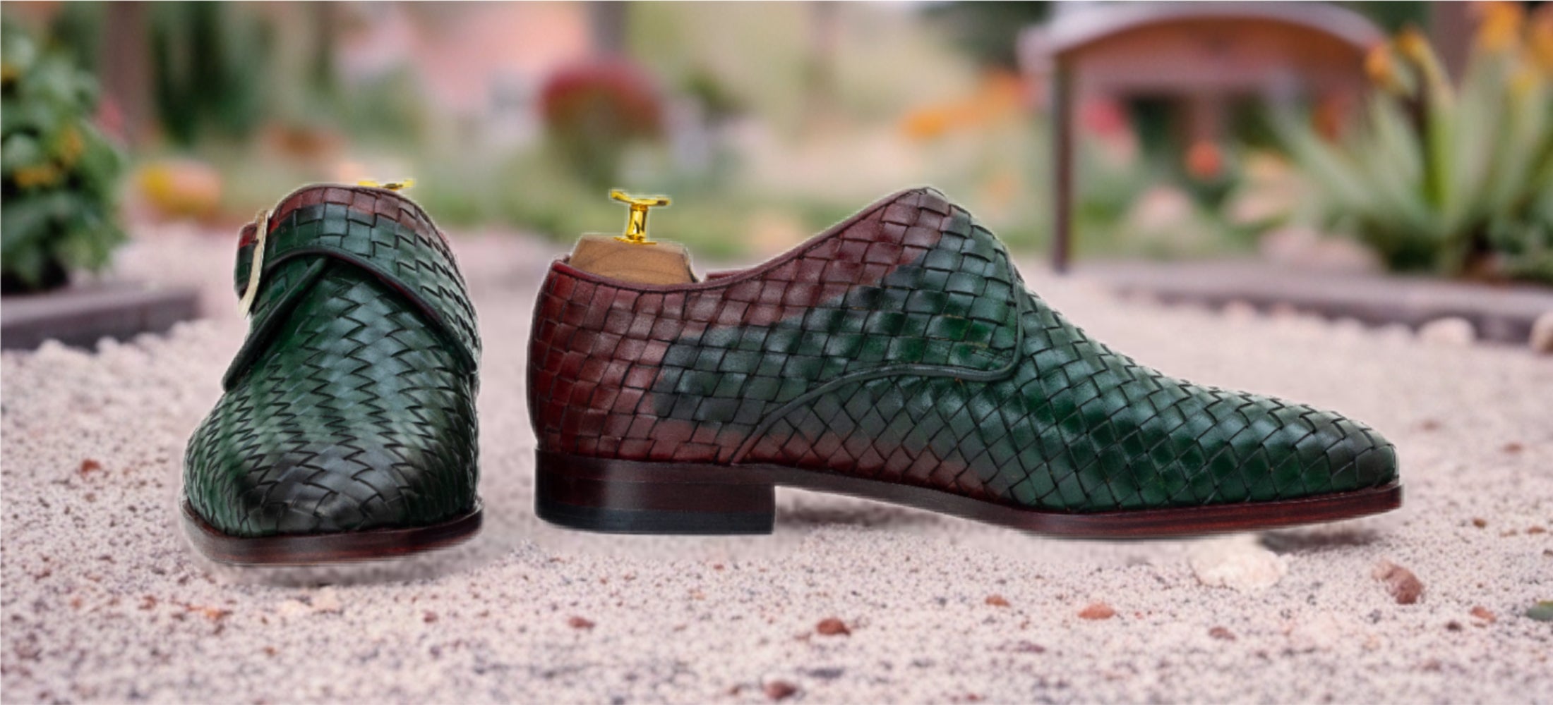 The Thoren doesn’t follow trends—it sets them. The single monk strap silhouette is clean and elegant, but the woven leather upper adds an element of bold, artistic flair. With a classic almond toe and low-profile buckle, it’s the perfect intersection of heritage and modernity. The color palette—green and burgundy—commands attention without being loud. Whether you're dressing for a gallery event, a formal dinner, or simply want to make a confident statement, this pair elevates your entire look with effortless distinction.