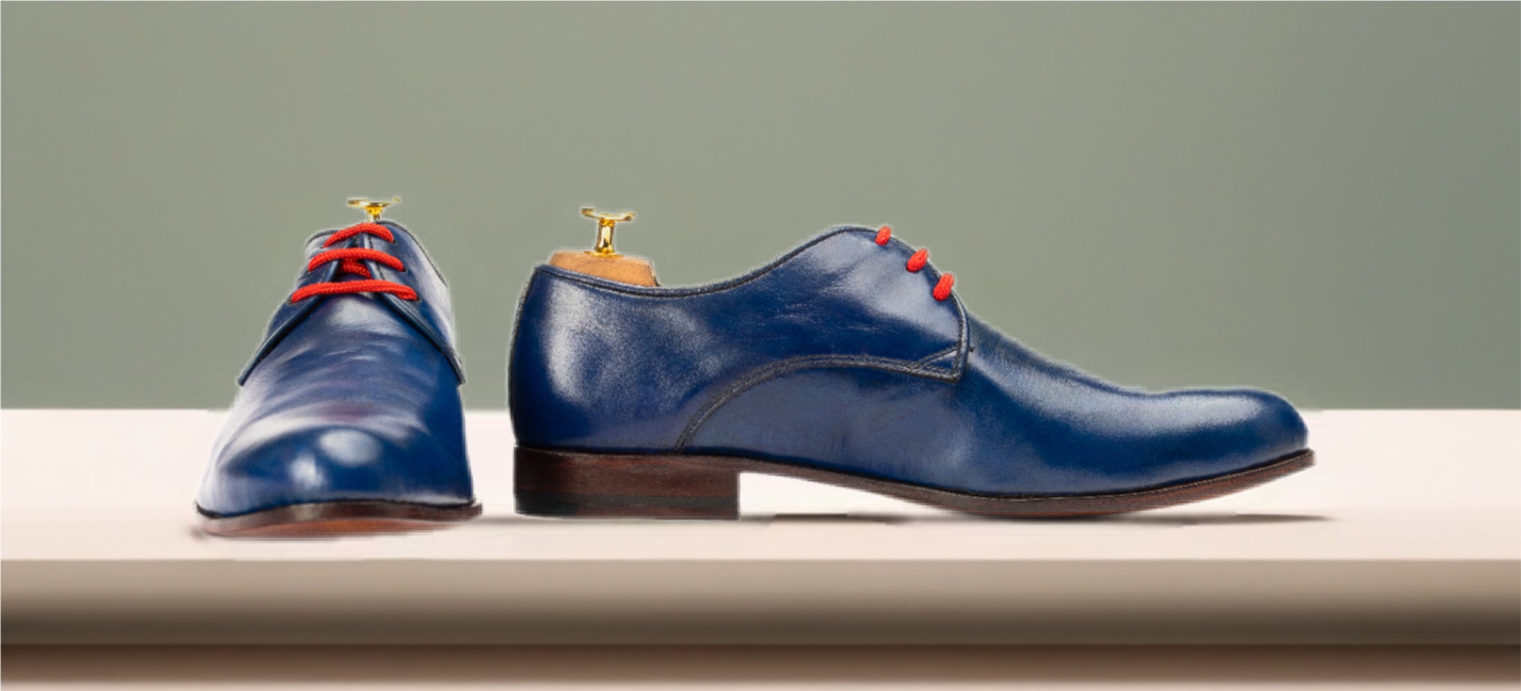 The Umber | Handpainted Lace Up is a bold, handcrafted Derby shoe with a hand-painted blue calfskin upper. Featuring a durable Goodyear welted natural calf leather sole and a comfortable calf leather lining, these sleek, round-toe Derbys blend artistry and functionality, perfect for both formal and casual settings.