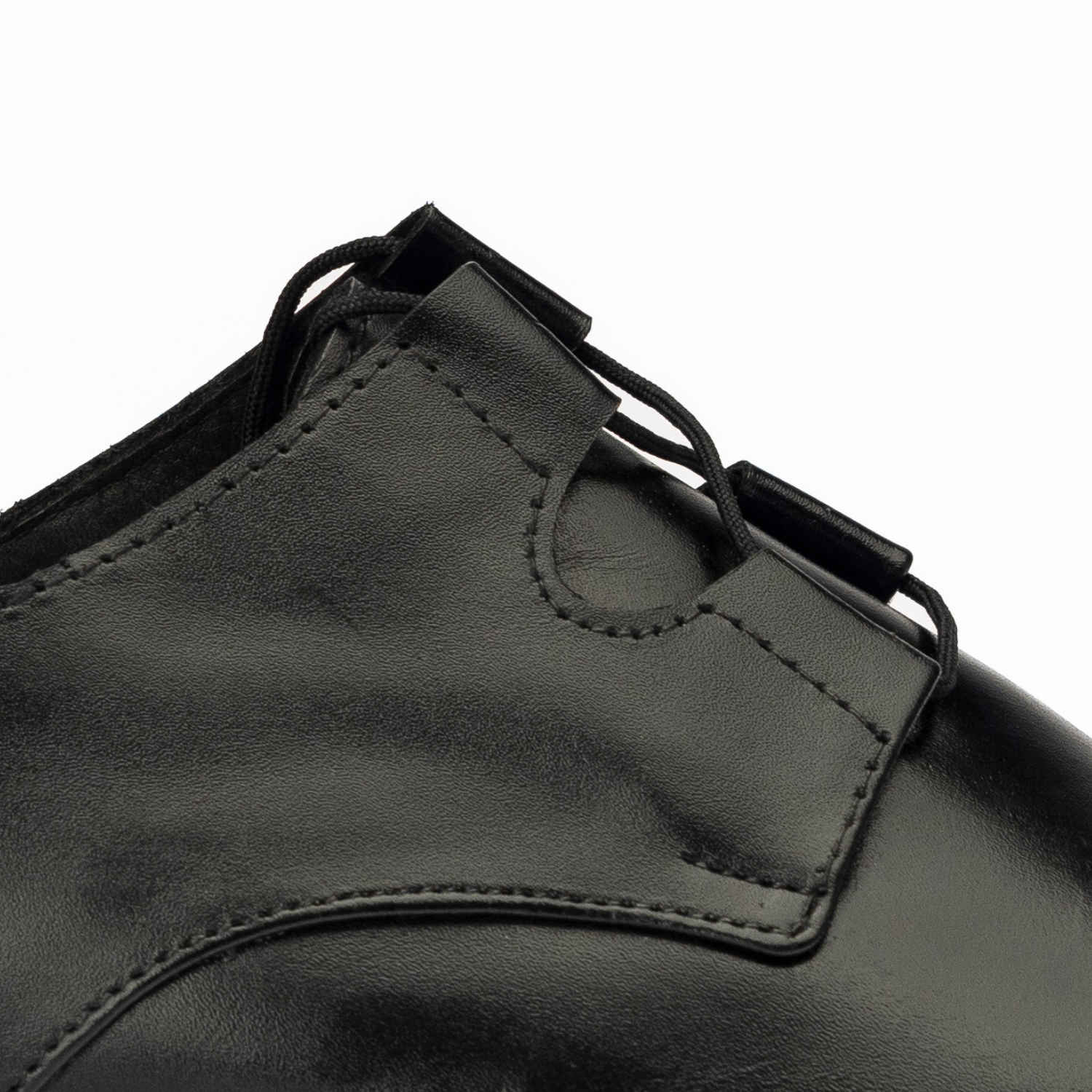 The Whitmer | Plain Toe Laces is a handcrafted Derby shoe, crafted from premium Italian black calf leather with a hand-painted finish and ghillie lacing. Featuring a durable Goodyear welted leather sole and a comfortable calf leather lining, these almond-toe Derbys blend timeless style with lasting comfort, ideal for formal and casual settings.
