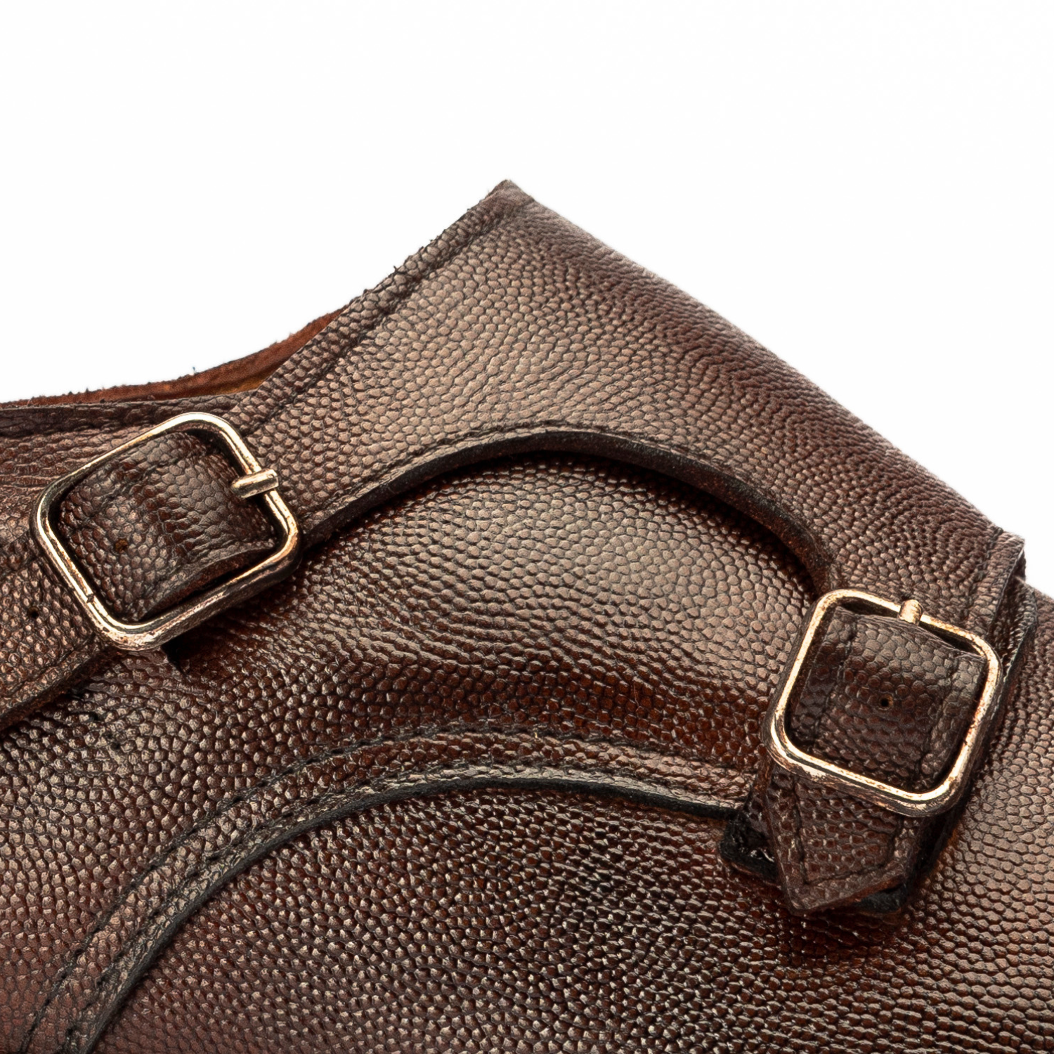 The Xeno is our bold reimagination of the timeless double monk strap. With its sleek almond toe and straight toe cap, this shoe balances classic structure with contemporary edge. The pebble grain adds a subtle twist to the traditional monk silhouette—making it an effortless statement piece, whether you’re in a tailored suit or dark denim. The double buckle closure isn’t just elegant—it’s a signature of confidence.