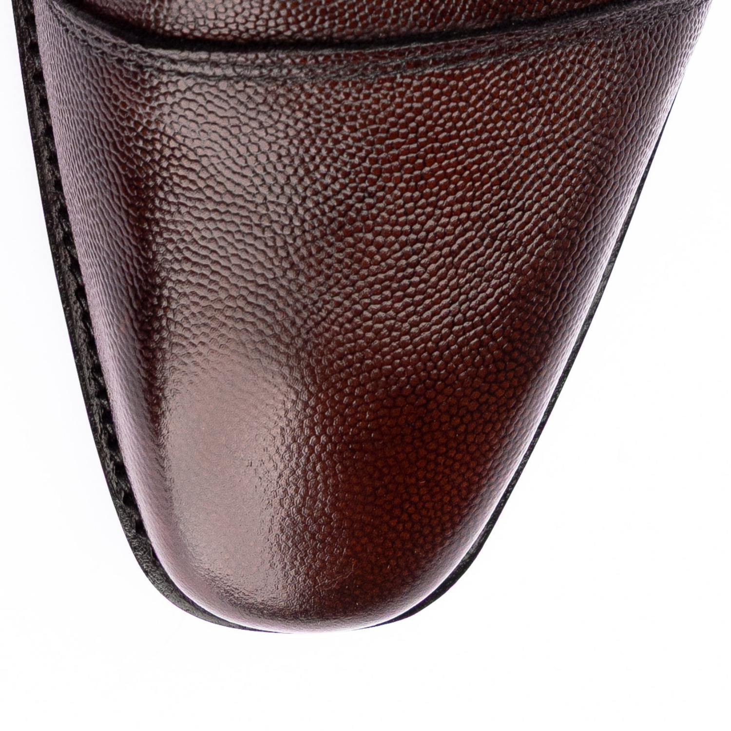 Every masterpiece starts with the material—and The Xeno is no exception. Crafted from the finest dark brown pebble grain calf leather, this shoe tells a story of rugged refinement. The texture is rich yet understated, offering a tactile depth that grows more beautiful with time. Each pair is hand-selected and hand-cut by artisans whose families have worked in leathercraft for generations, ensuring heritage is woven into every stitch.